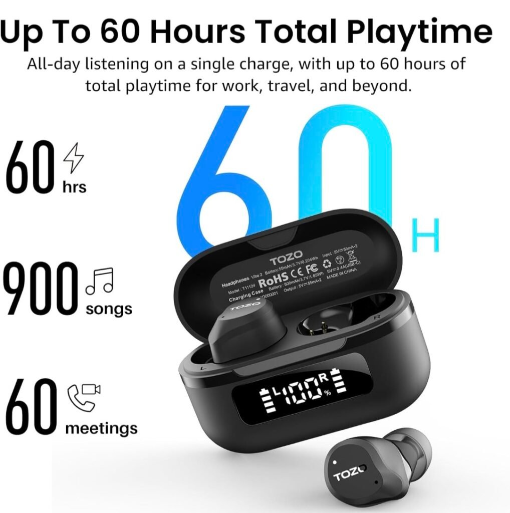 The TOZO NC9 also brings an impressive 5.3 stereo bass Bluetooth sound experience, enhancing your audio enjoyment. It includes 32 preset EQ modes and access to 2000 user-shared EQs, giving you flexibility in sound customization. With a LED display that shows battery life, you’ll never be caught off guard about when to charge. Plus, a quick 10-minute charge gives you enough juice to keep listening!